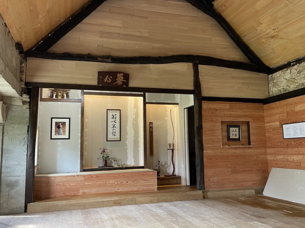 Comme les 3 autres bâtiments la grange date du moyen-âge. Le Kyudojo y a été aménagée en intégrant l’univers japonais tout en gardant les témoignages de l’histoire locale. Les arts chevaleresques des cultures occidentales et japonaises y cohabitent dans le respect de la protections de leurs origines respectives.