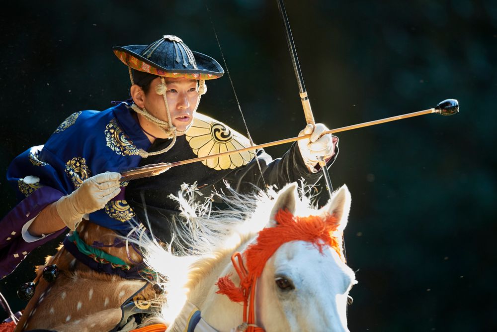 Cette expression est courante dans le langage japonais. Quand on cherche dans les dictionnaires la définition de chaque Kanji (idéogramme), jibun signifie “soi-même“. Mais surprise, le mot katte est un terme qui vient du Kyudo. Pour désigner la main gauche et la main droite on utilise les mots yunde “la main de l’arc“, et mete “la main du cheval“. Le samourai tenait l’arc dans la main gauche et guidait son cheval avec les rênes dans la main droite. Comme on peut le voir dans les démonstrations de yabusame, au galop la main droite ne tient plus les rênes, elle saisit la flèche dans le carquois et la place sur la corde. L’arc est ouvert pour atteindre successivement les 3 cibles placées le long du parcours.